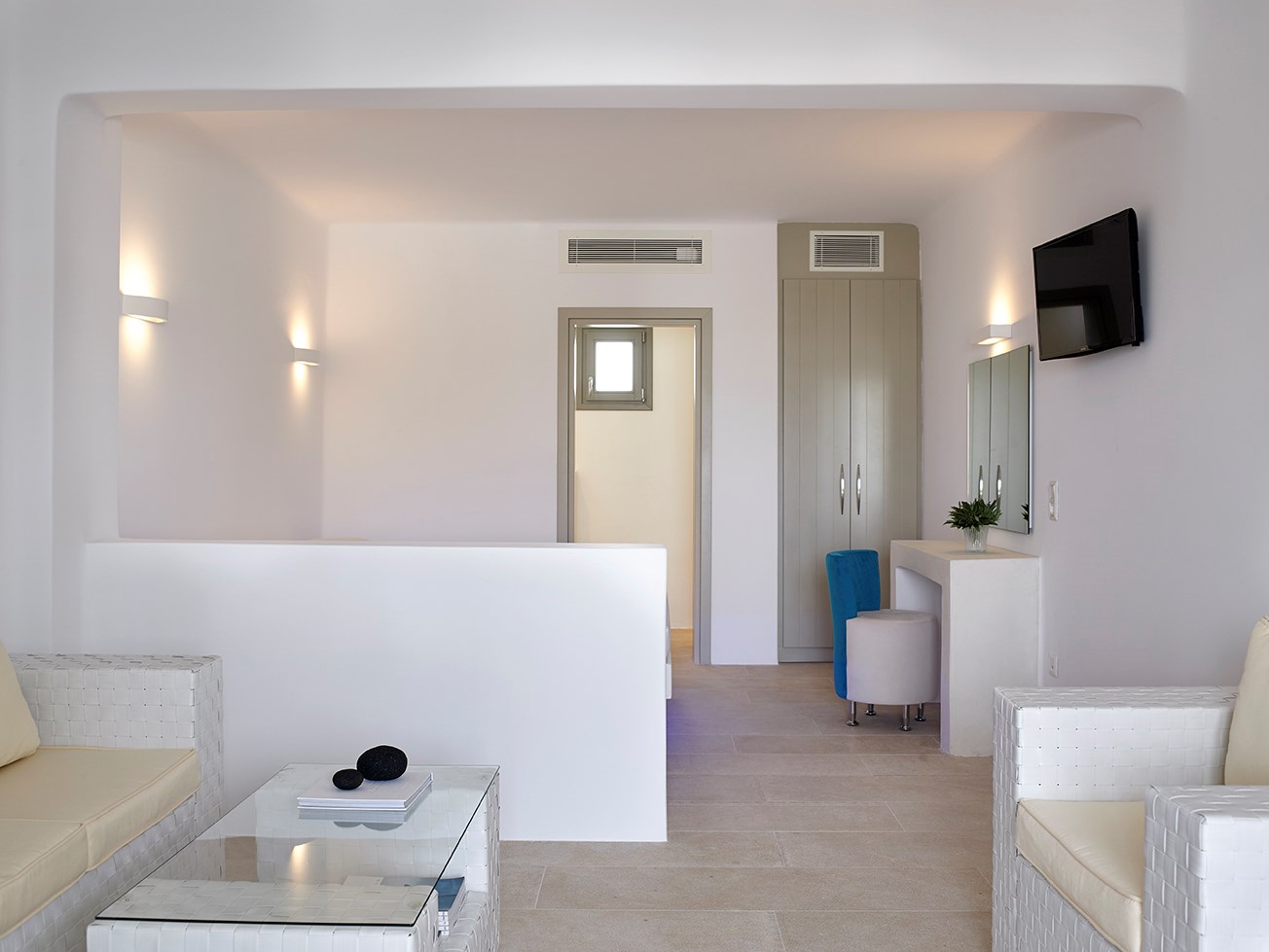Bulled rooms into a fascinating natural cave structure offering panorama views over the Aegean Sea